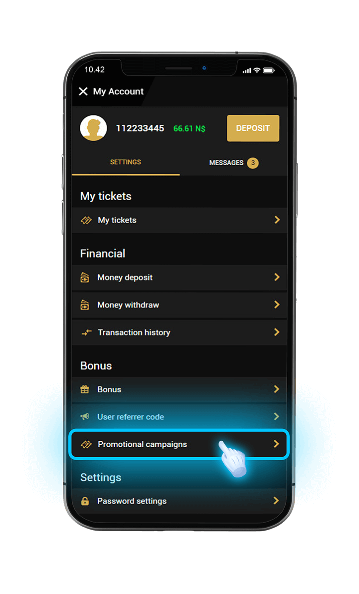 - In the main settings dropdown menu, find „Promo campaigns“ item