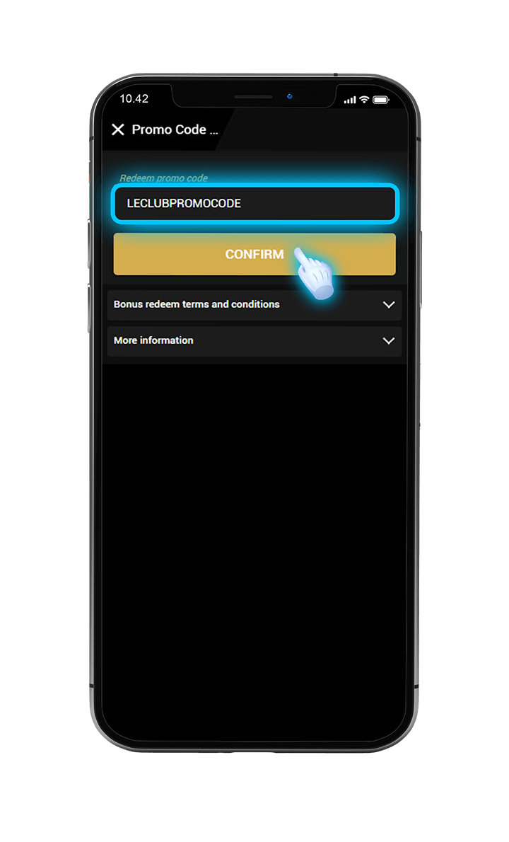 - The number of promotional codes that can be used throughout the duration of the promotional campaign is defined by LeClub Betting CC, and can be different for every campaign